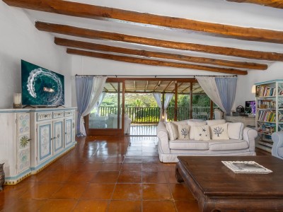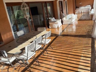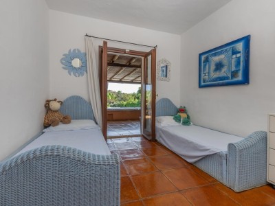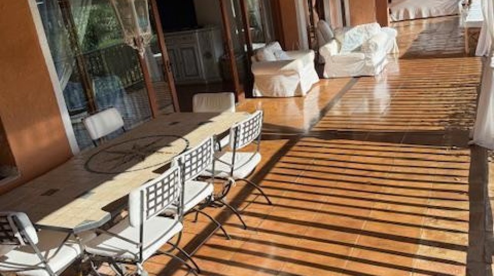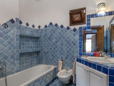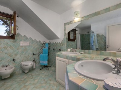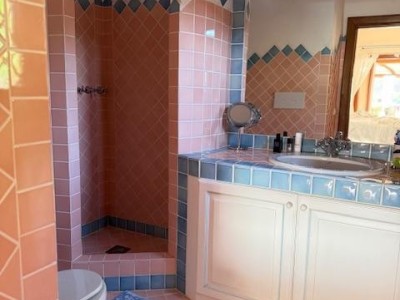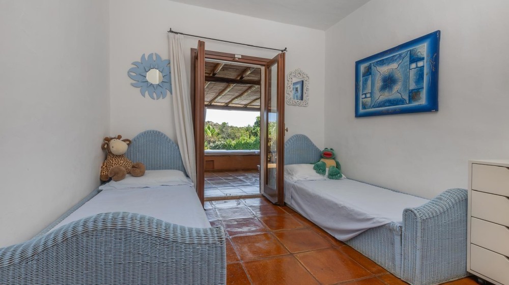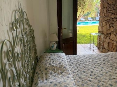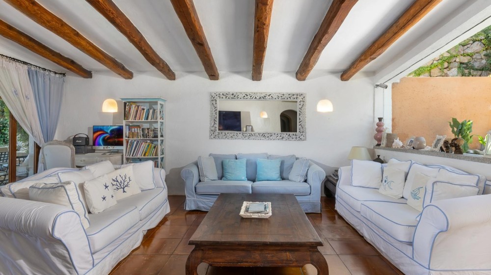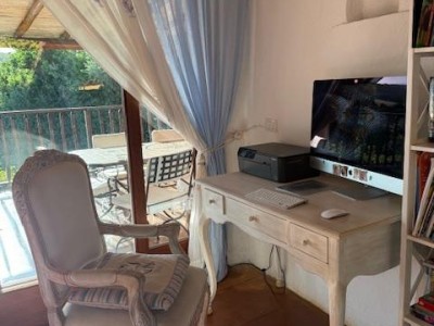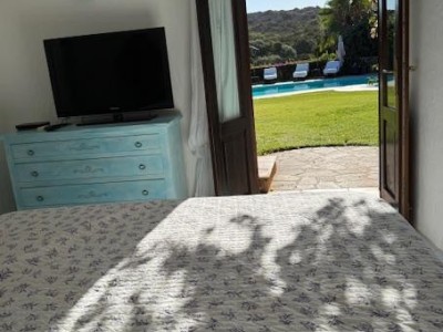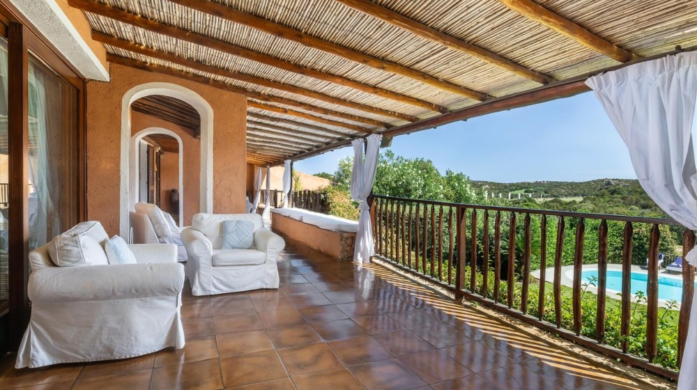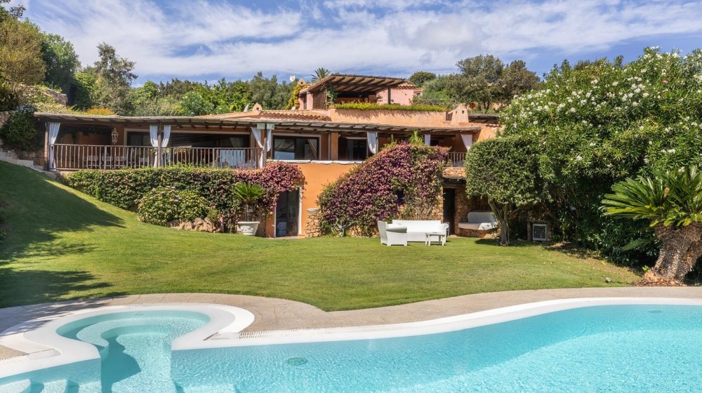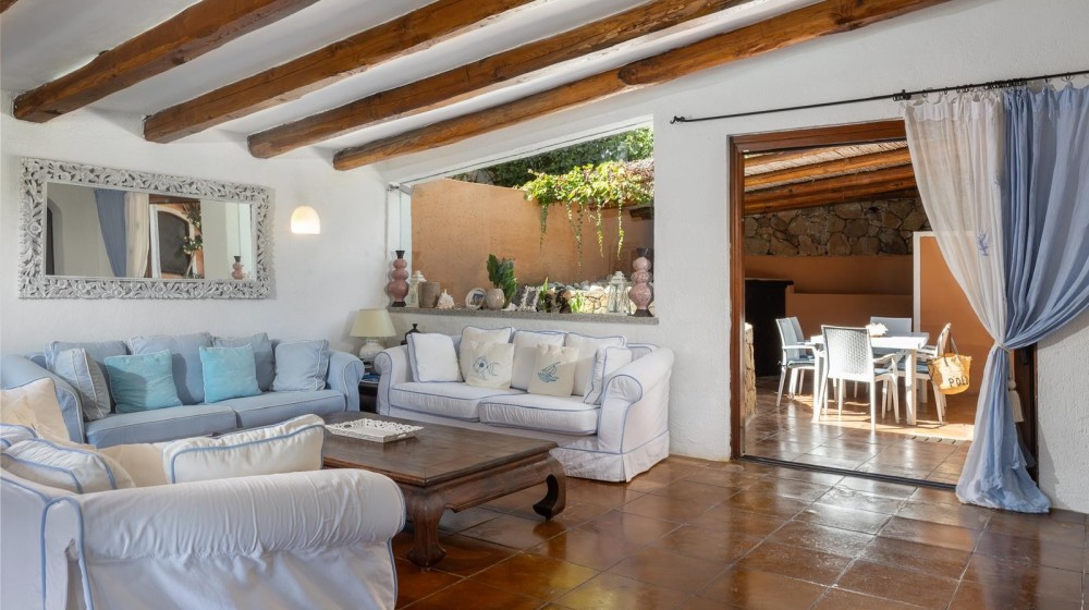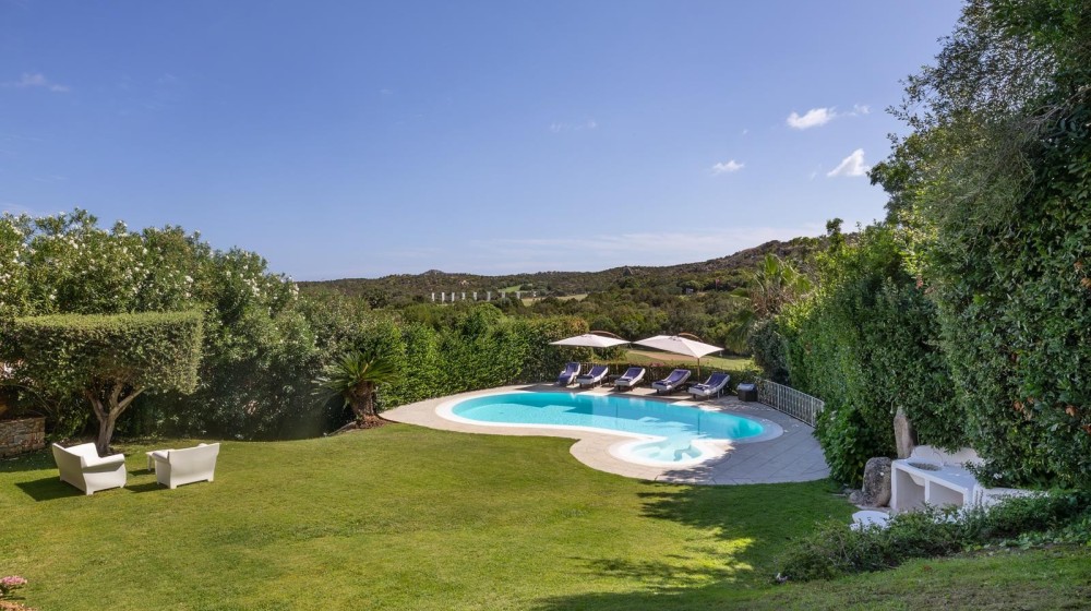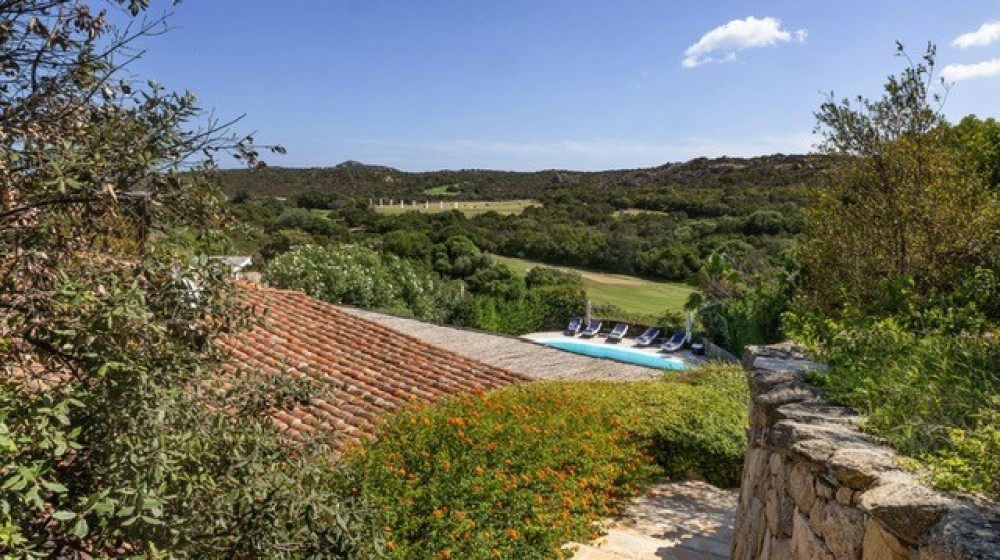 La villa sorge in una posizione ottimale per godere appieno della vibrante vita e delle spiagge cristalline della zona ed è disposta su due livelli, entrambi composti da 2 luminose aree arredate con mobili e complementi in stile rustico Costa Smeralda. Nel livello superiore, accessibile attraverso due ingressi separati, di cui uno pedonale direttamente dal lato stradale, si accede alla zona giorno dove è presente un ampio salotto con porte finestrate che si affacciano su una generosa veranda coperta abitabile dalla quale è possibile ammirare il lussureggiante verde del giardino con prato all’iinglese, il green del campo da Golf e gli armoniosi colori della macchia mediterranea delle colline circostanti. Sullo stesso livello è ubicata una cucina autonoma e un comodo disimpegno che porta alla zona notte, dove sono presenti tre camere da letto e due bagni di cui uno en suite nella camera padronale. Accanto alla zona giorno, adiacente all’ingresso, si trova un patio con angolo doccia che si presta a molteplici scopi (area barbecue, aperitivi, ecc.). Il livello inferiore, raggiungibile attraverso pochi gradini, ospita due ulteriori camere da letto e un bagno. Tutte le camere da letto, sia del livello superiore che inferiore, hanno la vista sul prato e sulla generosa piscina a sfioro riscaldata, circondata da aree relax e prendisole in un contesto di silenziosità e privacy. La proprietà è completata da un posto auto ad uso esclusivo, una cantina e un’ulteriore area di verde con prato all’inglese adiacente la piscina, utilizzabile come zona relax e di lettura. Uno dei punti di forza della proprietà è la vicinanza alla Club House del Golf, raggiungibile a piedi in appena tre minuti, e alle attrazioni più esclusive ed eleganti della Costa Smeralda.